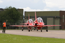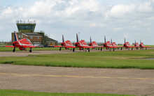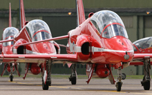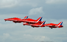 Initially, the new team were equipped with seven Folland Gnat trainers were chosen because they were far less expensive to operate than the front-line fighters of the era. In their first season, they flew at 65 airshow's across Europe. In 1966, the team was increased to nine members, enabling them to develop their Diamond Nine formation. In late 1979, after 1,292 Gnat displays, the team switched to the now familiar BAe Hawk trainer. The Red Arrows have now completed over 4,000 displays world-wide, in 52 countries, and are widely regarded as the world's most skilled and famous military aerobatics team.