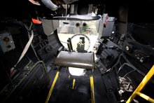 Climb up the steep red ladder and through the rear crew access hatch on the starboard side and once inside the fuselage your eyes are drawn to the right and the steepness of the climb up to the cockpit. You next note all the obstacles in your way including the rear spar and dreaded main spar further forward…how wartime crew dressed in inner and outer flying suits with a Mae West life jacket and parachute harness on top managed to operate in this claustrophobic and dark environment defies belief.