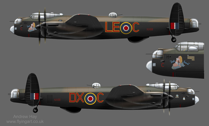 The 30th March saw NX611 relocated to the former USAAF airfield at Lavenham in Suffolk. Shortly afterwards the code letters HA-P were replaced by GL-C in honour of Group Captain Leonard Cheshire VC DSO DFC who had recently visited the airfield, performing a taxi run in NX611 whilst there.